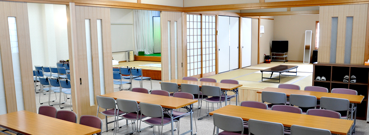 | 施設設備 | 大和室(飲食可)、キッチン、冷暖房完備、 駐車場完備、宿泊可 |