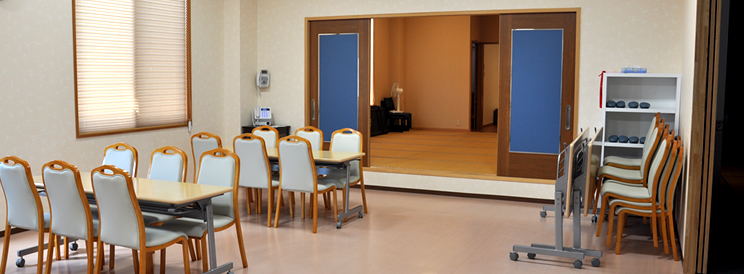 | 施設設備 | ホール、遺族控え室、会食室、バスルーム、 多目的トイレ、冷暖房完備、駐車場完備、宿泊可 |